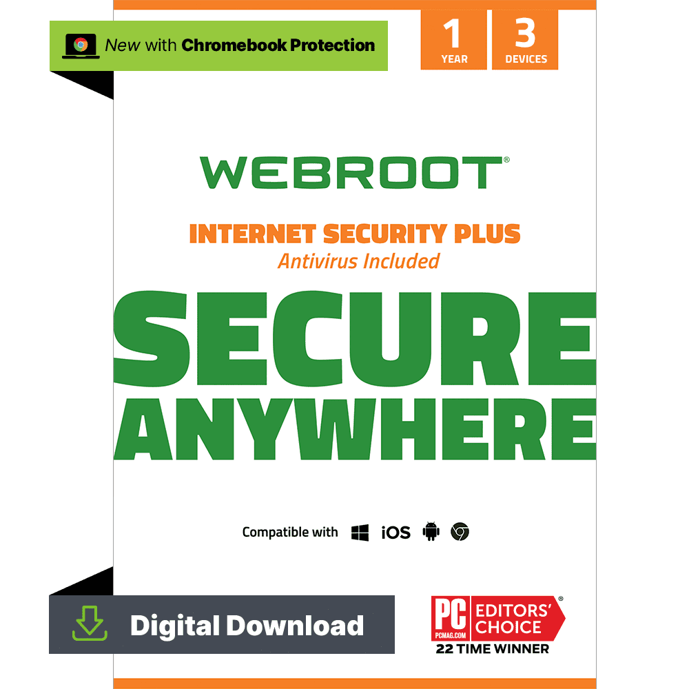 Webroot® Internet Security Plus – Powerful real-time protection for PC, Mac®, Chromebook™ Android™ and IOS devices. Cloud-based Webroot Internet Security Complete shields your household from the latest malware, phishing scams and cyberattacks without slowing down your computer or conflicting with other software. We continuously analyze and classify billions of apps, files, websites and more so you can bank, shop, and browse online worry-free. Webroot protects your personal information against online threats and warns you of potential danger before you click. Webroot Internet Security Plus also helps you create and manage strong passwords for all of your online accounts. Webroot empowers you with peace of mind – knowing that your devices and personal information are protected from cyberattacks – without slowing you down.